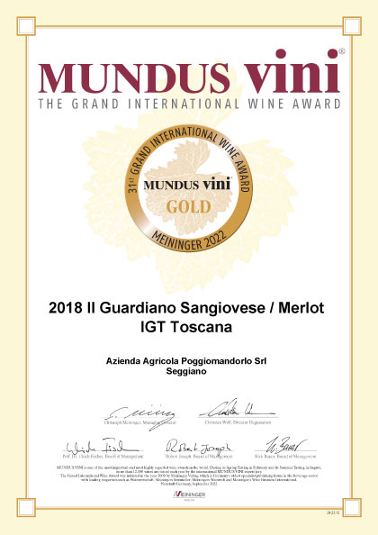 Premiati con ORO per la loro eccezionale qualità Il Poggiomandorlo 2013 e Il Guardiano 2018.