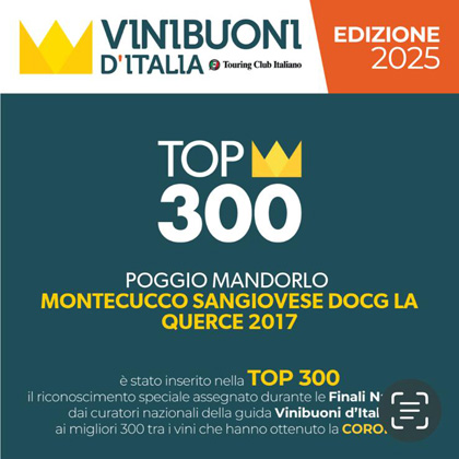 Il Montecucco Sangiovese DOCG La Querce 2017 di Poggiomandorlo è stato inserito nella TOP 300 dell’edizione 2025 della guida Vinibuoni d’Italia.